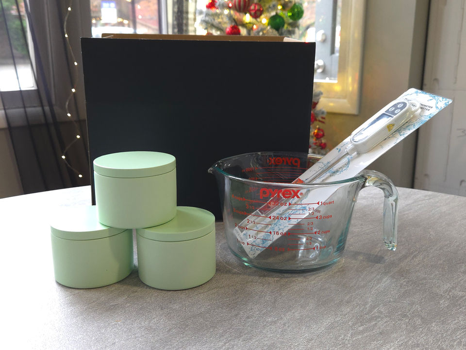 Everything required to pour three premium wood-wick candles.